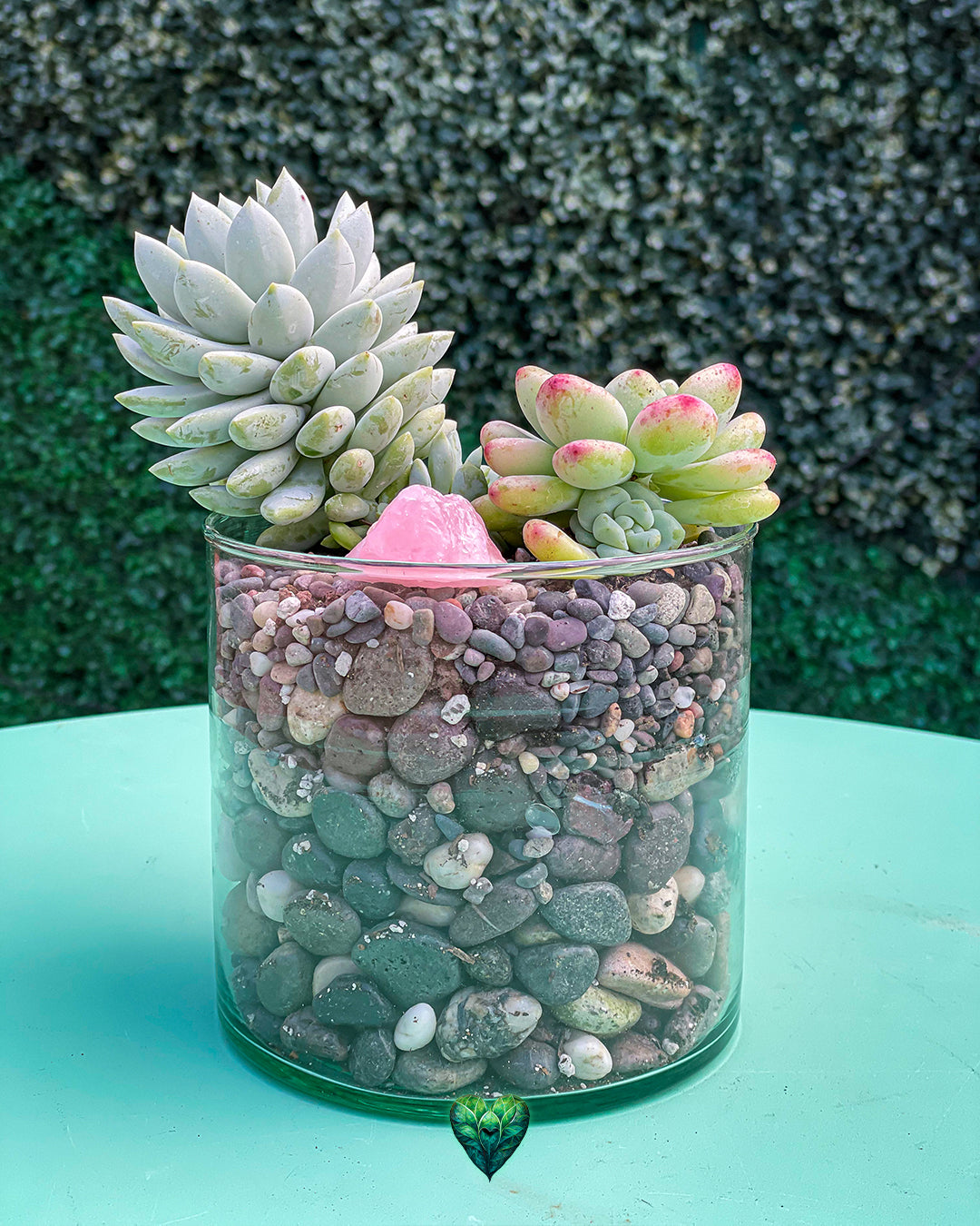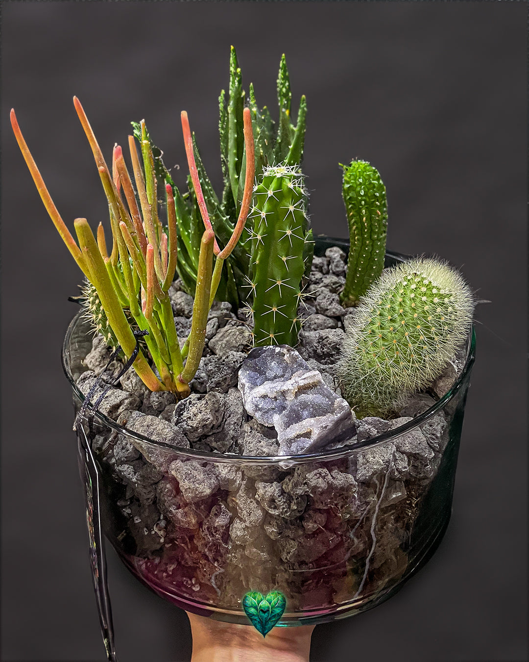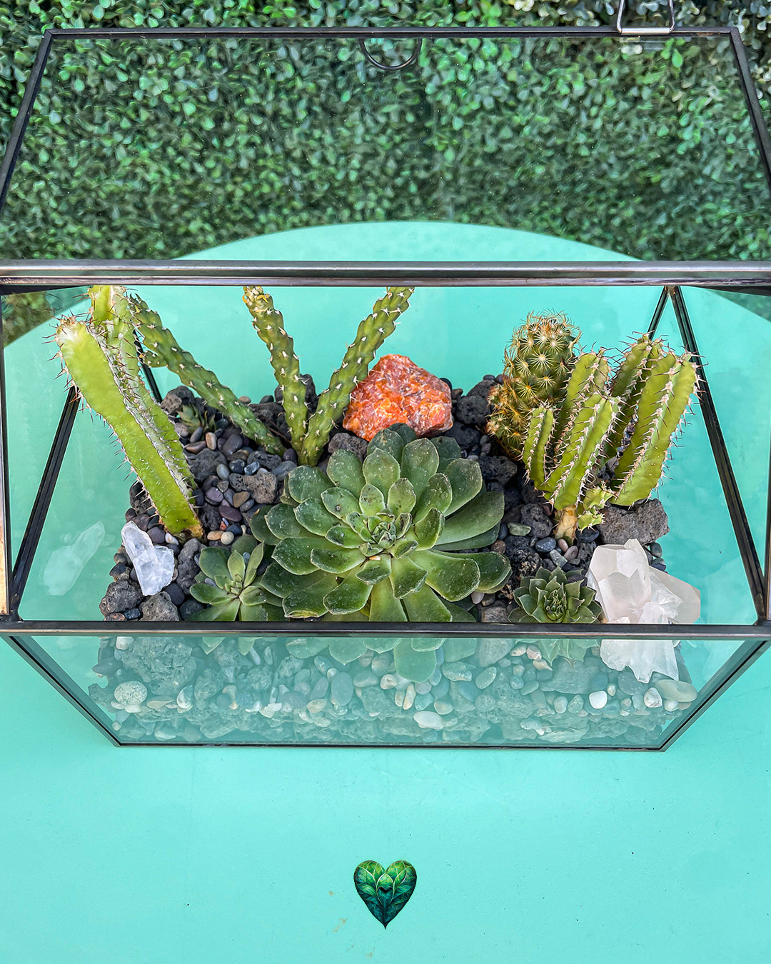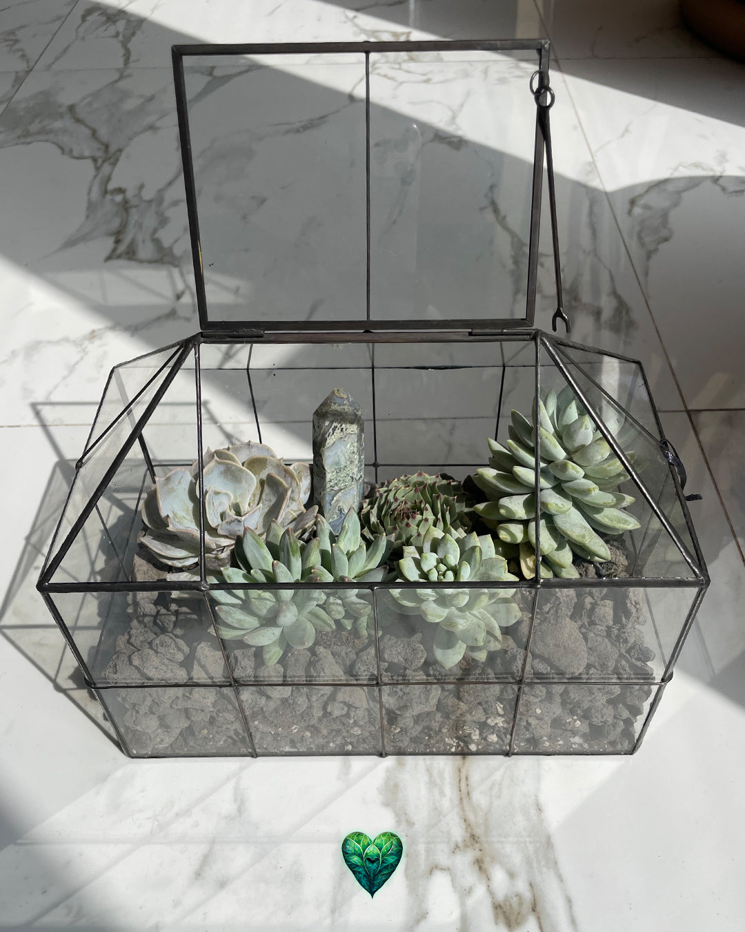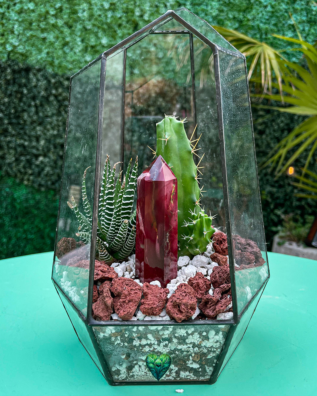 ¡Buena pregunta! En PlantiSana te damos la opción de añadirle un toque de magia a tu terrario. Esto significa que tu terrario incluirá piedras preciosas y/o cristales junto a sus cactus y/o suculentas. Escogeremos las piezas considerando todos los aspectos de tu terrario para hacer la mejor combinación. Será único e inigualable, te lo recomendamos totalmente.